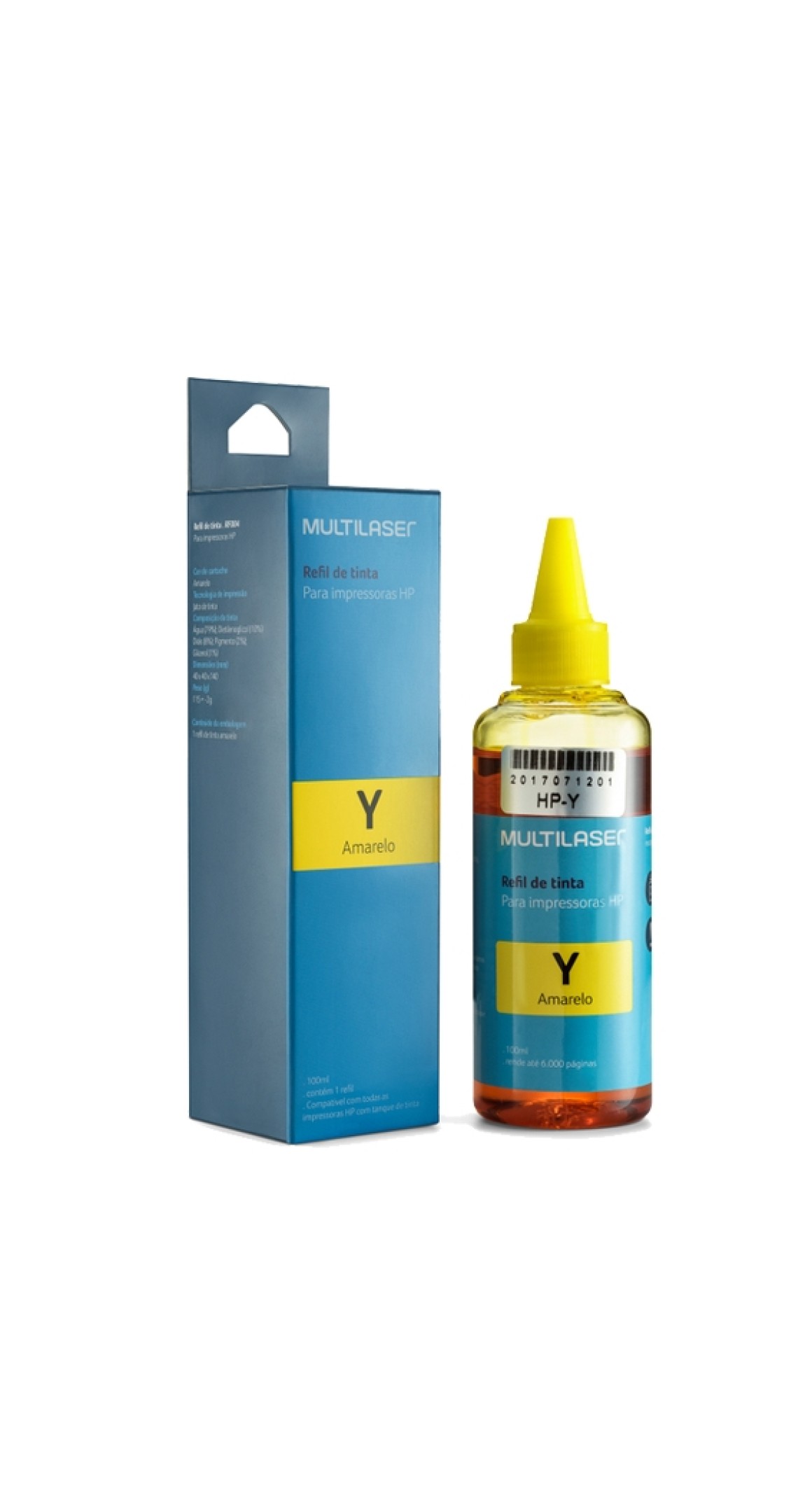 Refil de Tinta para Impressoras HP 100 ML Amarelo Multilaser - RF004