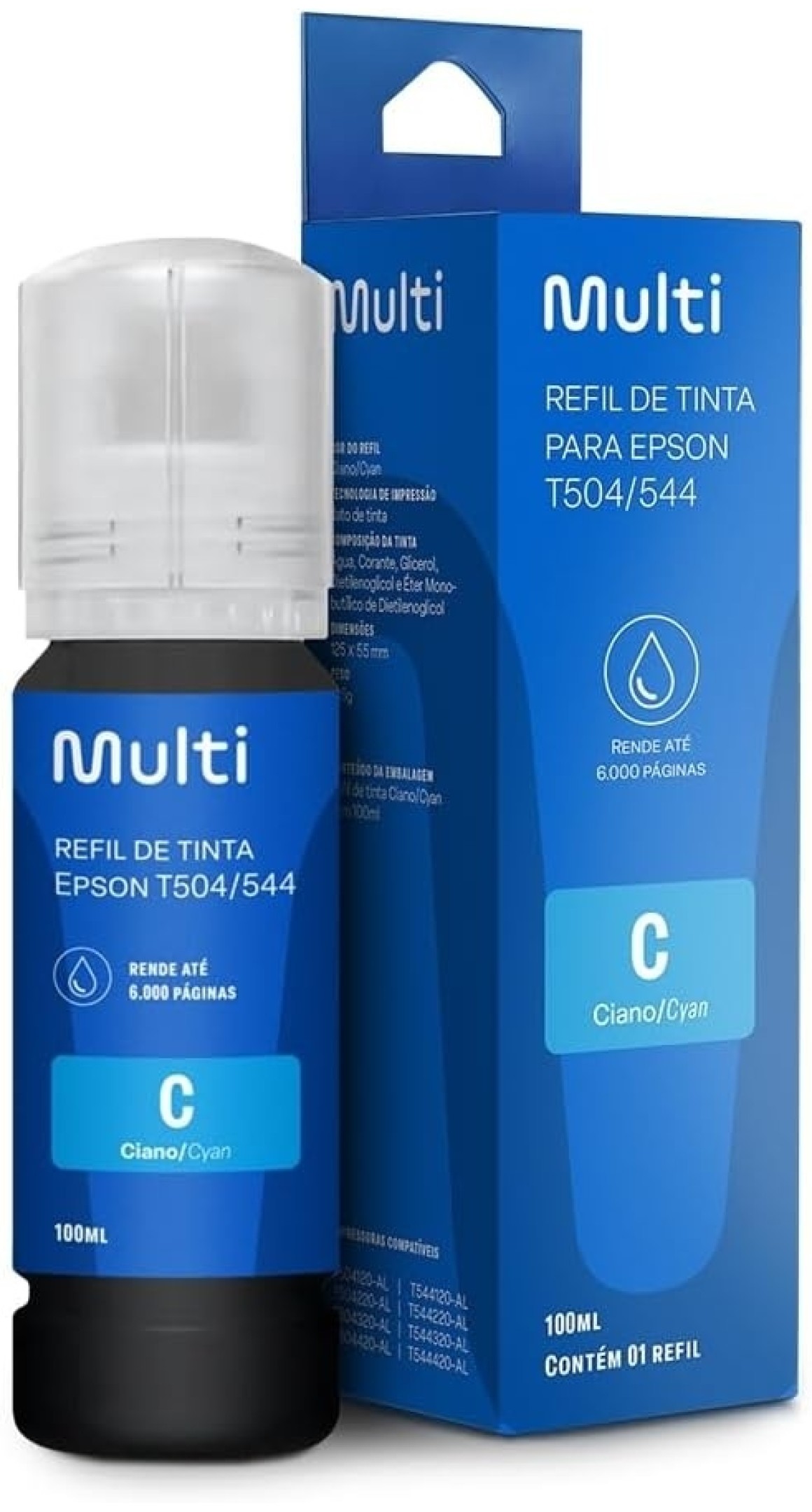 REFIL DE TINTA COMPATIVEL P/ EPSON T504/544 CIANO 100ML. MULTILASER