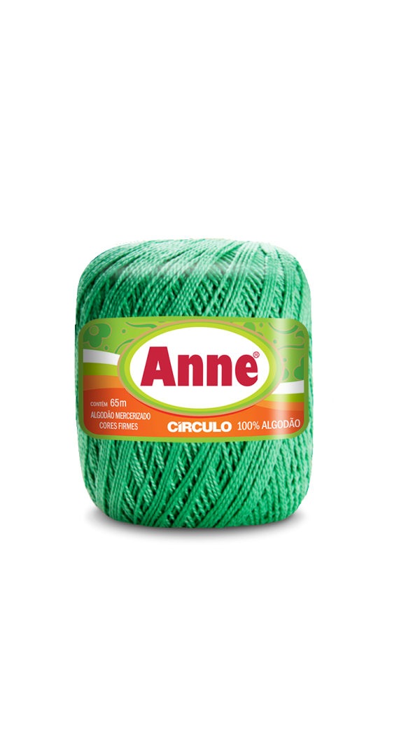 O fio Anne é um produto 100% algodão mercerizado, que proporciona acabamento cintilante e toque macio a sua confecção. Quando trabalhado com pontos mais fechados para meia estação e inverno, mantém a sua peça leve e suave. Na decoração é indicado principalmente para confecção de trilhos de mesa, toalhinhas decorativas, barrados em toalhas e panos de copa, pois possui um excelente rendimento.